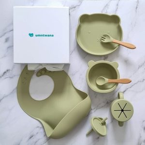 Serve up delicious meals for your baby in our stylish Dijo Tableware. Each set includes all you need for meal times for your hungry little one. Our 6 piece silicone feeding set contains a bear plate, bear bowl, 2-in-1 cup, spoon and fork. And to round it all off, we have included a bib to catch all the spills whilst they tuck into your yummy food. Perfect for weaning.